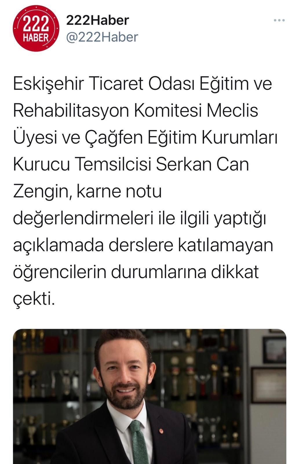 Eskişehir Ticaret Odası Eğitim ve Rehabilitasyon Komitesi Meclis Üyesi Serkan Can Zengin, karne notu değerlendirmeleri ile ilgili yaptığı açıklamada derslere katılamayan öğrencilerin durumlarına dikkat çekti.