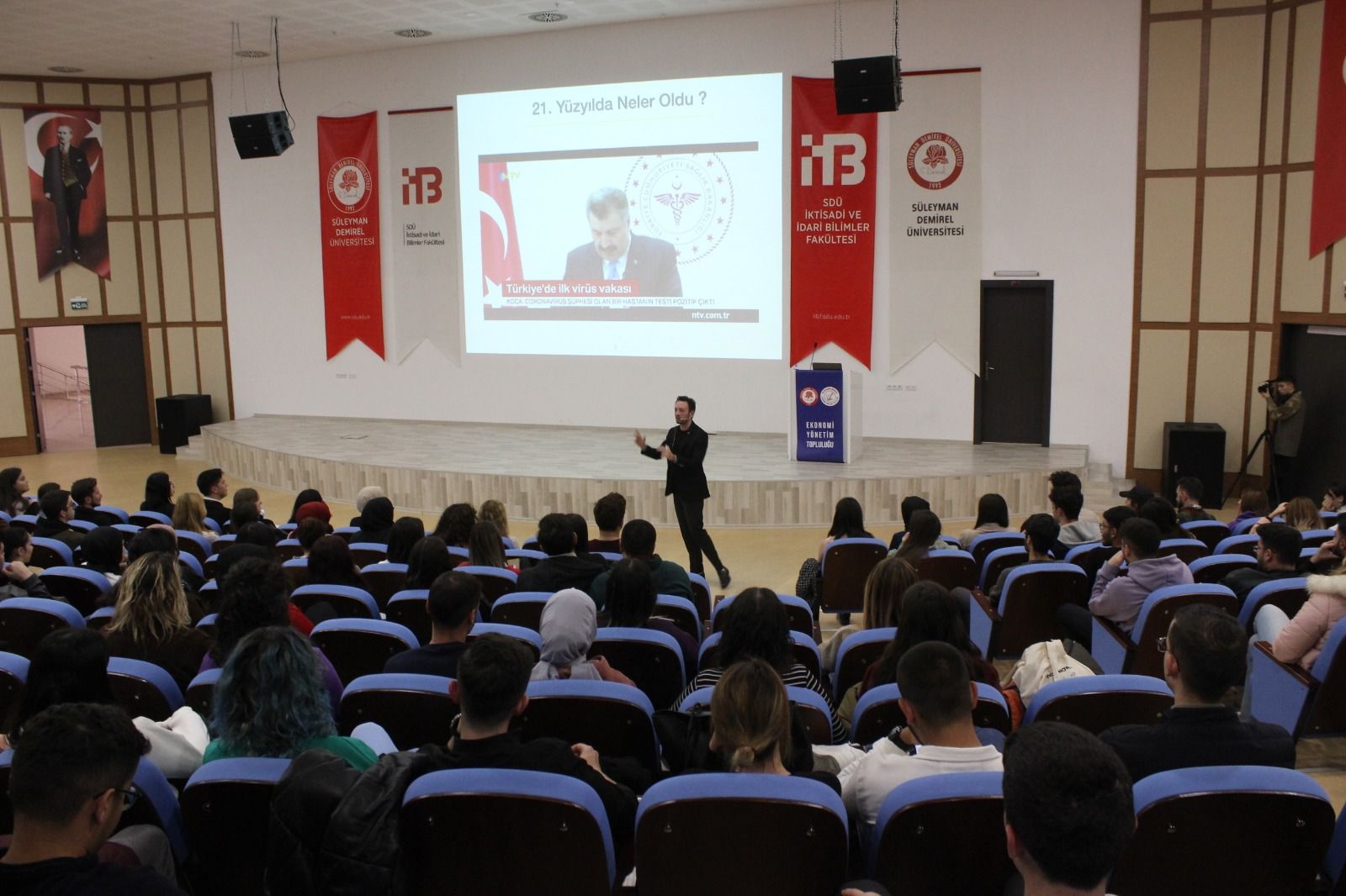 Süleyman Demirel Üniversitesi İİBF Konferans Salonunda düzenlenen etkinlikte “İş’te Sen” konferansını veren Serkan Can Zengin, gençlere eğitim ve iş hayatına dair tavsiyelerde bulundu, tecrübelerini paylaştı.