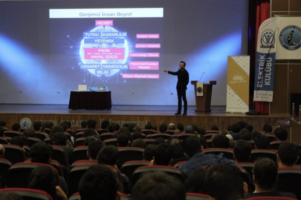 Türkiye Genç İş İnsanları Derneği (TÜGİAD) Eskişehir Şube Başkanı Serkan Can Zengin, 'İŞ'TE SEN' sloganıyla düzenlenen ve üniversite öğrencileri ile bir araya geldiği konferanslarına Anadolu Üniversitesinden sonra Denizli'de Pamukkale Üniversitesi ile devam etti.